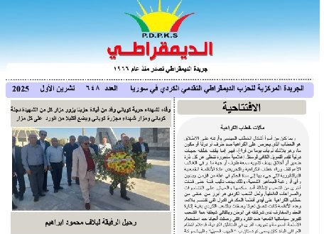 صدر العدد الجديد 648 من جريدة الديمقراطي التي يصدرها الحزب الديمقراطي التقدمي الكردي في سوريا، ...