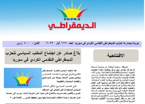 صدور العدد الجديد 625 من الديمقراطي في Beşa Kurdî, اخبار عامة, اراء ومقالات, الاخبار السورية, الاخبار الكردستانية, الاخبار المحلية, الاخبار المميزة, الادب والفن 2023-05-15 674 زيارة صدر العدد الجديد 625 من جريدة الديمقراطي التي يصدرها الحزب الديمقراطي التقدمي الكردي في سوريا باللغتين العربية والكردية لقراءة وتحميل العدد اضغط هنا الديمقراطي العدد 625 أيار 2023 2023-05-15 PDPKS