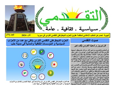 صدر العدد الجديد ( 77 ) من جريدة الديمقراطي، وهي جريدة شهرية تصدر عن المكتب الإعلامي لمنظمة عفرين للحزب الديمقراطي التقدمي الكردي في سوريا