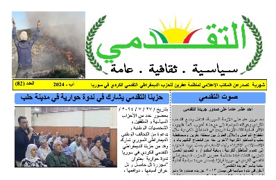 صدور العدد 82 من جريدة التقدمي في Beşa Kurdî, اخبار عامة, اراء ومقالات, الاخبار السورية, الاخبار الكردستانية, الاخبار المحلية, الاخبار المميزة 2024-08-26 369 زيارة صدر العدد الجديد 82 من جريدة التقدمي التي تصد عن المكتب الإعلامي لمنظمة عفرين للحزب اليدمقراطي التقدمي الكردي في سوريا لقراءة وتحميل العدد اضغط هنا: جريدة التقدمي العدد 82 2024-08-26 PDPKS
