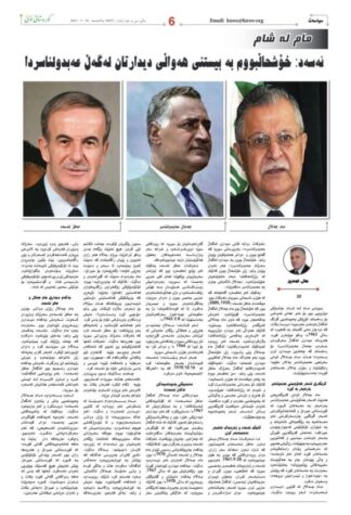 وفي هذا الإطار، يقول مام جلال في كتاب (لقاء العمر): (حينذاك- أي عند لقاء مام جلال بعبد الناصر- كان المسؤولون السوريون شباباً، وكما أخبرني بعضهم فيما بعد بأنهم كانوا فرحين جداً عندما التقيت بالرئيس عبد الناصر، وقالوا بأنهم كانوا يقرأون اسمي في الصحف: جلال الطالباني يلتقي عبد الناصر..)، وكان الضابط في القوى الجوية السورية آنذاك، المقدم حافظ الأسد (1930- 2000)، هو أحد هؤلاء الشباب الذين سرهم لقاءات مام جلال مع الزعيم عبد الناصر في القاهرة، وكانت هي المرة الأولى التي يسمع فيها باسم مام جلال من خلال الصحف التي نقلت خبر هذا اللقاء التاريخي على صدر صفحاتها، ويصرح الأسد بنفسه لمام جلال في إحدى لقاءاته معه بأنه فرح بذاك الخبر، وينقل مام جلال في مذكراته (لقاء العمر)، عن لسان الأسد قائلاً: (التقيت ذات مرةً بالرئيس حافظ الأسد، وقال لي: أنا كنت ضابطاً برتبة مقدم في القوة الجویة حین زرت أنت عبد الناصر وقرأت الخبر في الصحف، أنت صدیق للعرب ومؤید للعلاقة العربیة الكردیة، وما تفعله سیكون له تأثیر إیجابـي على العلاقات الكردية- العربية..).