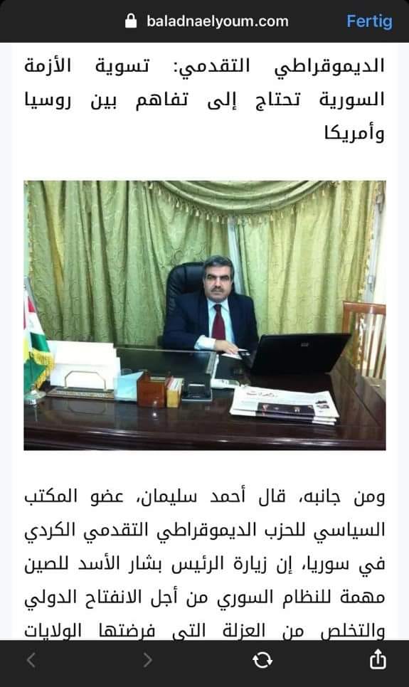 نص اللقاء الذي اجرته صحيفة “بلدنا اليوم ” الالكترونية المصرية مع الاستاذ احمد سليمان عضو الهيئة الادارية بالمكتب السياسي لحزبنا الحزب الديمقراطي التقدمي الكردي في سوريا