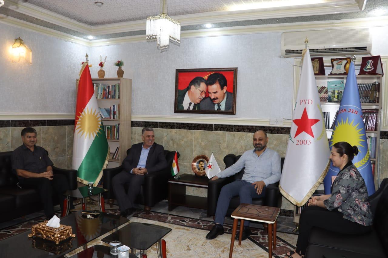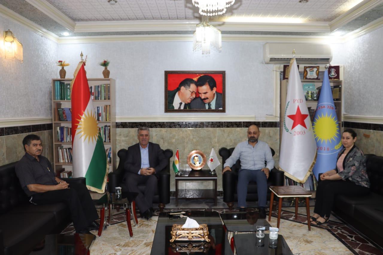 واستقبل الوفد من قبل الدكتور جاويدان كمال (ممثل حزب الاتحاد الديمقراطي PYD في إقليم كردستان)، وبيريفان محمد (عضو مكتب العلاقات)..