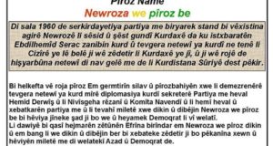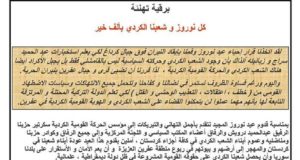 برقية تهنئة بنوروز من منظمة عفرين للتقدمي كل نوروز و شعبنا الكردي بألف خير