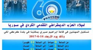 الاستاذ حميد درويش سكرتير عام الحزب الديمقراطي التقدمي الكردي في سوريا جزيل الاحترام الأخوة والأخوات المحترمون في قيادة الحزب تحية طيبة بمناسبة الذكرى السنوية الستون لتأسيس حزبكم نتقدم اليكم بإسم هيئة ملتقى الجزيرة الوطني بأحر التهاني والتبريكات متمنين لحزبكم قيادة وقواعد ومناصرين دوام النجاح والموفقية. لقد كان حزبكم أول حزب سياسي كردي في سوريا، أخذ على عاتقه منذ التأسيس مهمة ...