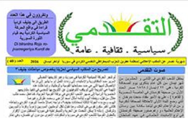 صدر العدد ( 40) من جريدة التقدمي الشهرية الصادرة عن مكتب الثقافة و الاعلام في منظمة عفرين للحزب الديمقراطي التقدمي الكردي في سوريا باللغتين الكردية و العربية. وتضمن العدد : صوت التقدمي تصريح من المكتب السياسي لحزبنا بخصوص مباحثات جنيف3 المكتب السياسي للحزب الديمقراطي التقدمي الكردي في سوريا يدين القصف التركي على كردستان تركيا الحزب الديمقراطي التقدمي الكردي في سوريا ...