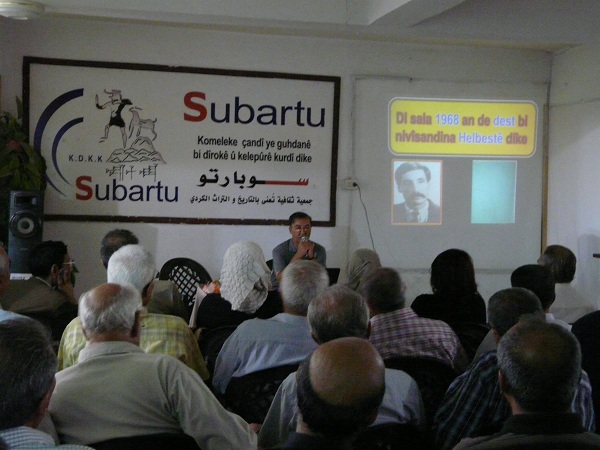 بدعوة من جمعية سوبارتو الثقافية التي تعني بالتاريخ والتراث الكردي اقيم يوم امس السبت 10 /10 / 2015 في قاعة الجمعية بقامشلو، محاضرة ثقافية للاستاذ فارس عثمان حول سيرة وحياة الباحث والشاعر الكردي صالح حيدو حضرها حشد من المهتمين والمثقفين. تطرق الاستاذ فارس عثمان في محاضرته الى اهم المحطات الاساسية التي مر بها الشاعر والباحث الكردي في حياته، كما ...