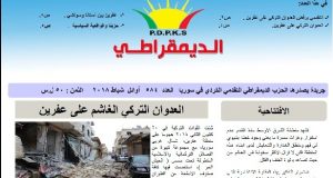 صدر العدد الجديد 584 من جريدة الديمقراطي التي يصدرها الحزب الديمقراطي التقدمي الكردي في سوريا باللغتين العربية والكردية وقد تضمن العدد مواضيع متنوعة منها: – التقدمي يرفض حضور مؤتمر سوتشي بسبب التطورات الأخيرة في عفرين – التقدمي يدين ويستنكر القصف التركي البربري على عفرين – ندوات سياسية جماهيرية لحزبنا في قامشاو وعامودا والحسكة – العدوان التركي على عفرين – سياسات ...