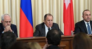 اعتبر وزراء خارجية كل من روسيا وإيران وتركيا أن مستوى العنف في سوريا انخفض وهو ما يسمح لطرفي النزاع في البلاد بالانتقال من المواجهة العسكرية إلى التسوية السياسية. وقالت الخارجية الروسية، بعد لقاء مغلق عقده وزراء خارجية روسيا، سيرغي لافرورف، وتركيا، مولود تشاوش أوغلو، وإيران، محمد جواد ظريف، في مدينة أنطاليا التركية، الأحد، إن اتفاقاً جرى بين الوزراء بشأن جميع ...