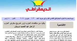 صدر العدد الجديد 614 من جريدة الديمقراطي التي يصدرها الحزب الديمقراطي التقدمي الكردي في سوريا باللغتين العربية والكردية. وقد تضمن العدد مواضيع متنوعة من بينها: -الافتتياحية بعنوان: شعبنا في مهب الأخطار. – سلمان حسو : معاناة شديدة … هل تصبح فرصة ؟. – نواف حسن: أول تنظيم سياسي كردي في البلاد. – علي شمدين : إلى أين يقودنا هذا الجمود..!!. ...