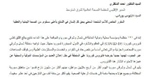 السيد الدكتور تيدروس ادهانوم غيبريسوس المدير العام لمنظمة الصحة العالمية السيد الدكتور احمد المنظري المدير اإلقليمي لمنظمة الصحة العالمية لشرق المتوسط السيد داينيوس بوراس، المقرر الخاص لألمم المتحدة المعني بحق كل إنسان في التمتع بأعلى مستوى من الصحة البدنية والعقلية إننا في ١٢١ منظمة ومؤسسة محلية ودولية العاملة في شمال وشرقي سوريا والموقعة على هذا النداء، نتابع ببالغ ال قلق ...