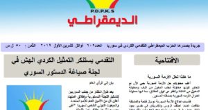صدر العدد الجديد 602 من جريدة الديمقراطي التي تصدرها اللجنة المركزية للحزب الديمقراطي التقدمي الكردي في سوريا باللغتين العربية والكردية ، وقد تضمن العدد مواضيع وأخبار سياسية وثقافية متنوعة: من بينها رحلة معاناة الشعب السوري – معاناة المكتومين مستمرة – فرهاد جودي : الأزمة السورية والاجتماعات المتكررة – سياسات أردوغان وراء أزمة تركيا الاقتصادية – فارس عثمان: في الذكرى ...